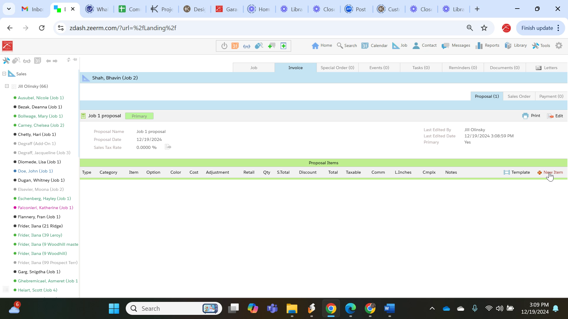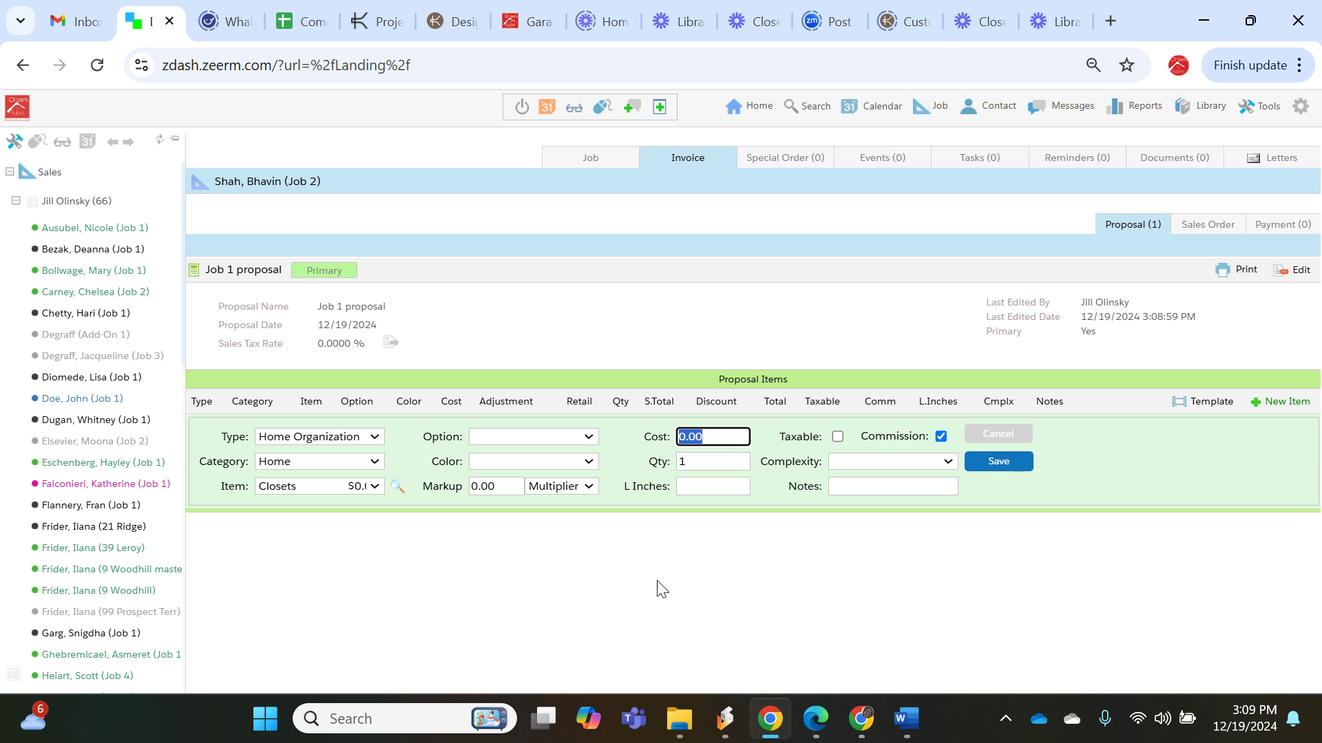 - Add New Item\ Click the green button for adding a new item. Choose the appropriate category (home or garage) based on the proposal details. Home is the default.Then choose the Item, for Home there is only one item, which is Closets.