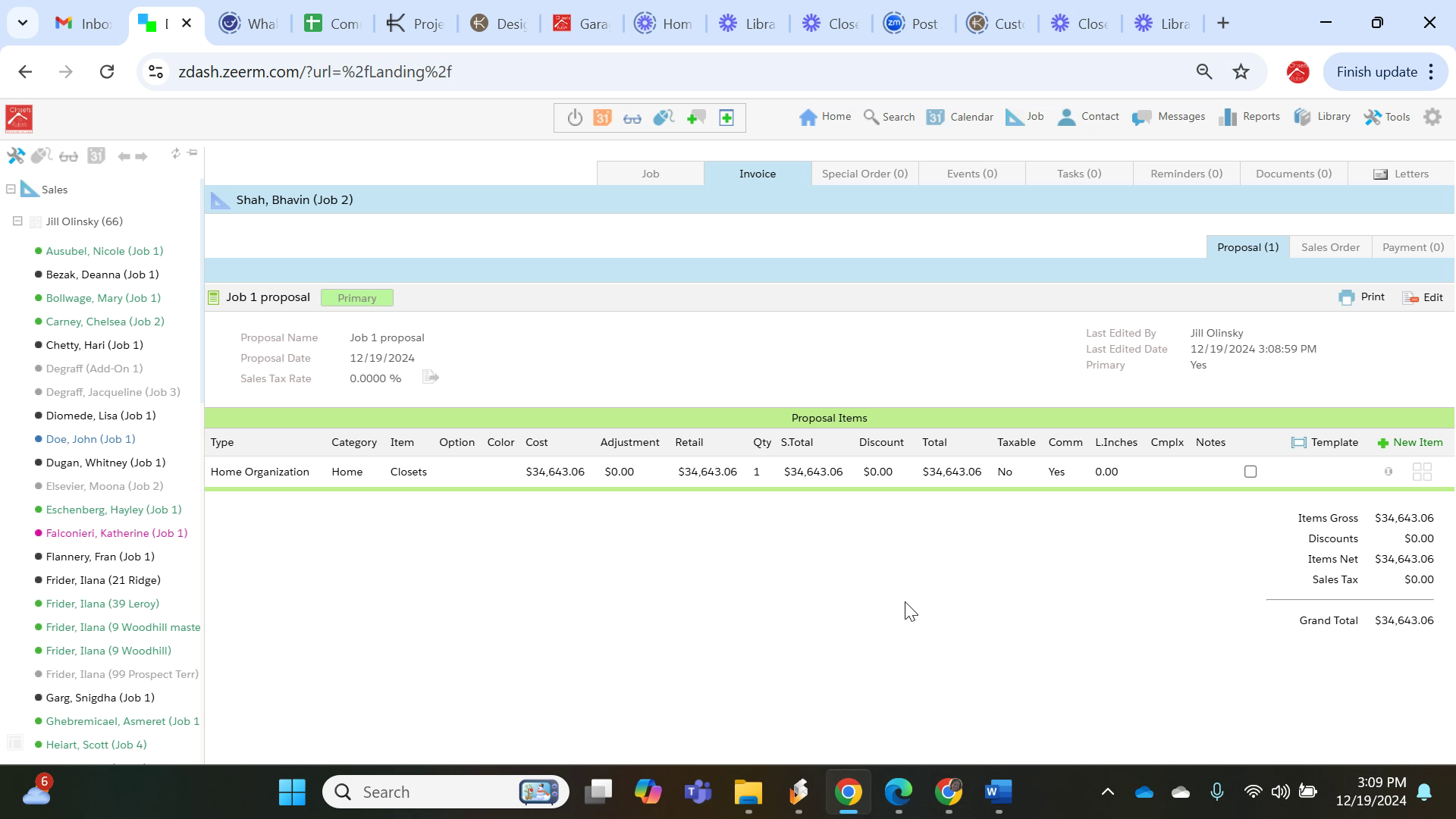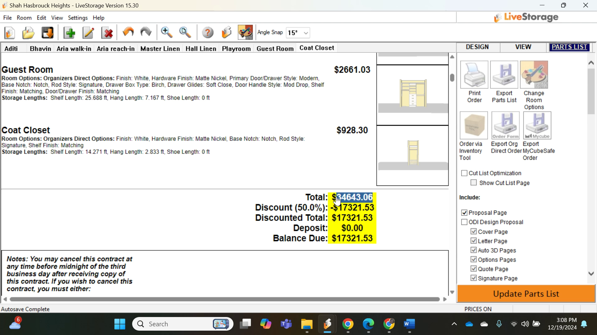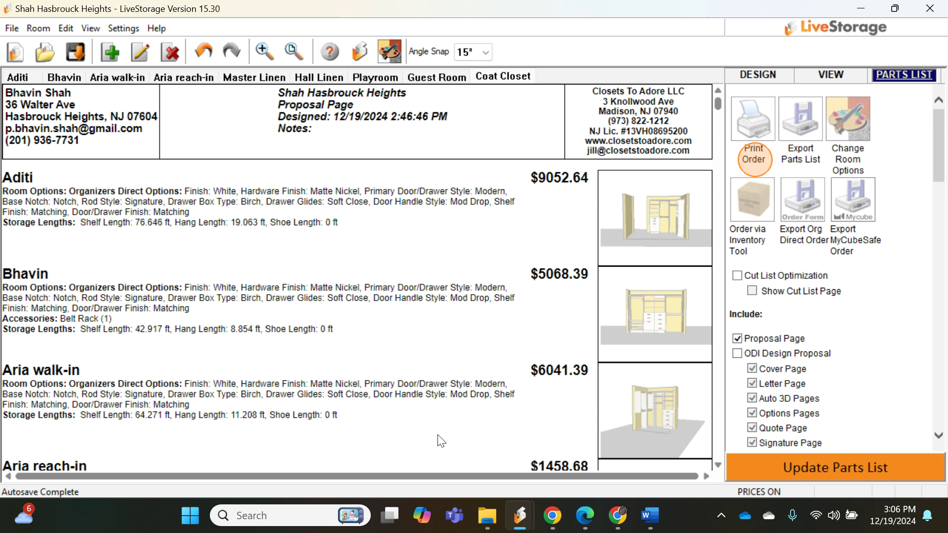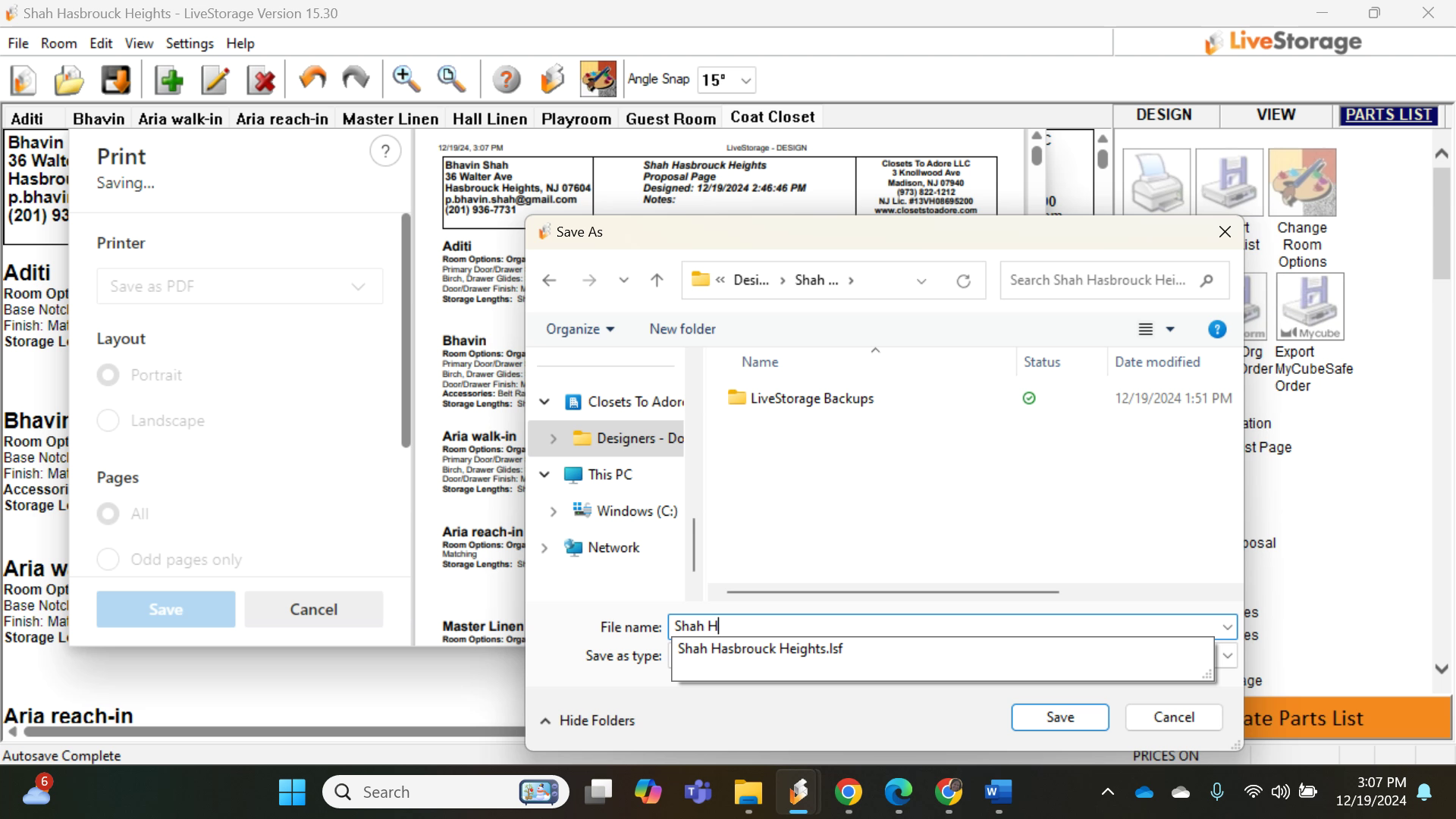 - Save the Proposal as a PDF\ Click on "Print Order" and select "Save". Store it in the same folder as the live storage file.\ Name the PDF using the client's last name, the town they live in, followed by the word "proposal".