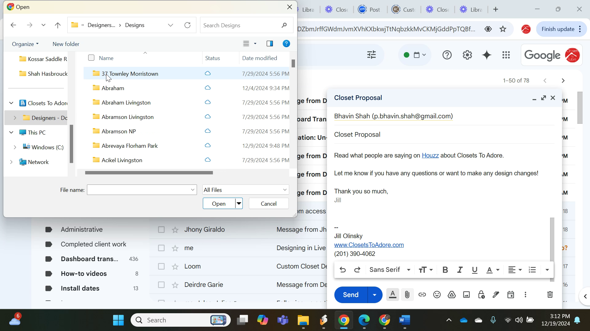 - Email the Proposal\ Go back to the live storage and copy the client's email address. Then, open a new email and paste the address.