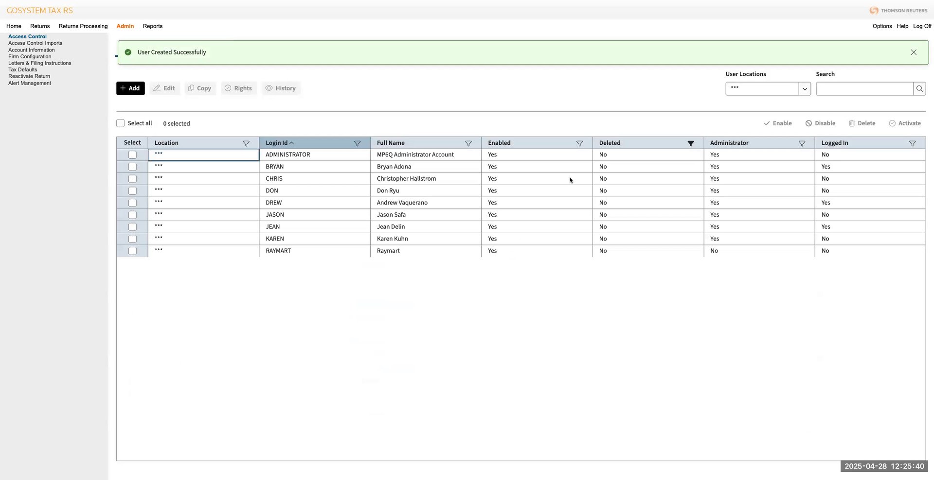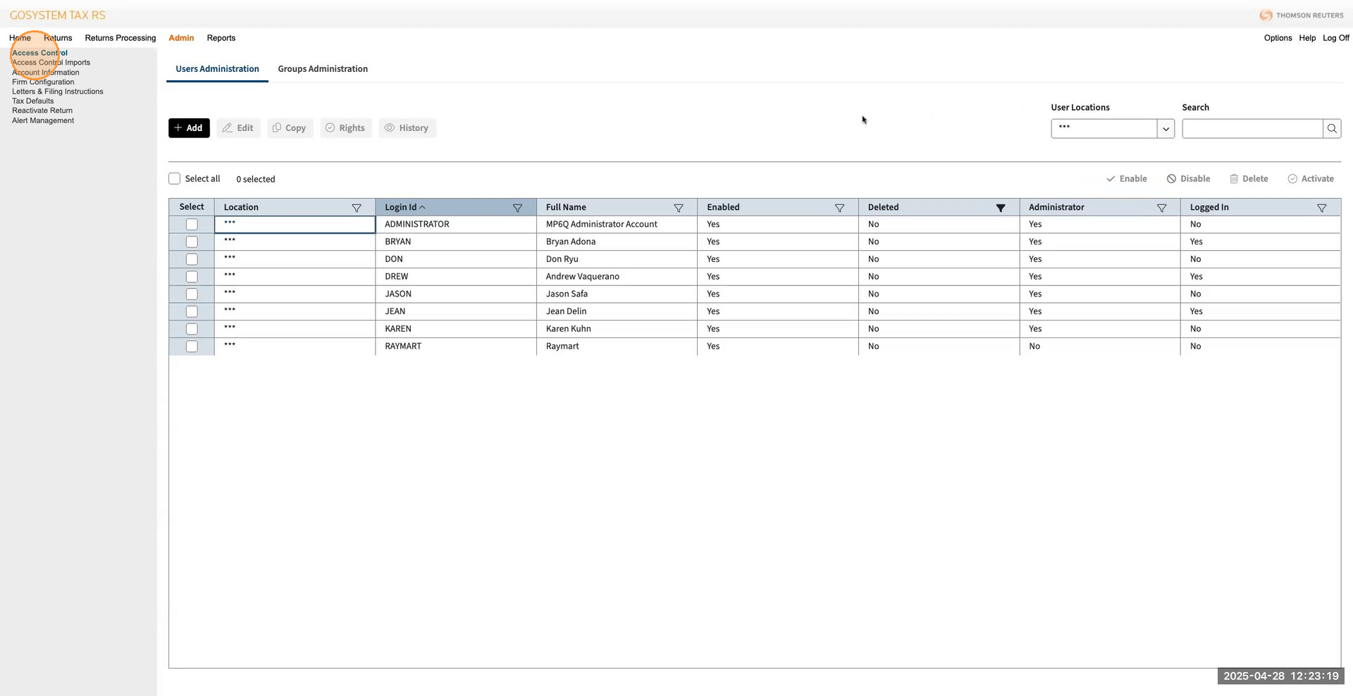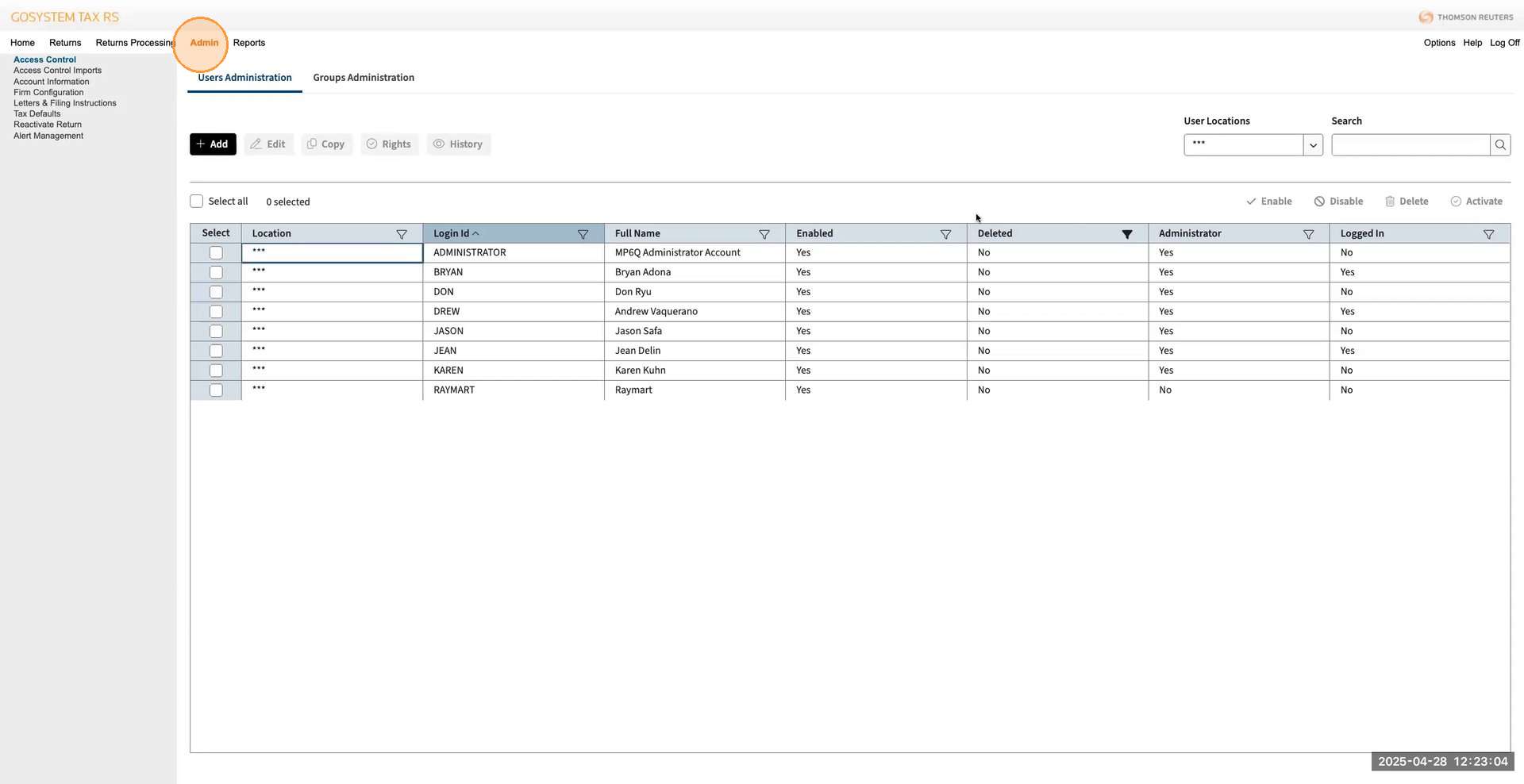 Once logged in, go to the Admin section and select Access Controls. Then, navigate to User Administration.