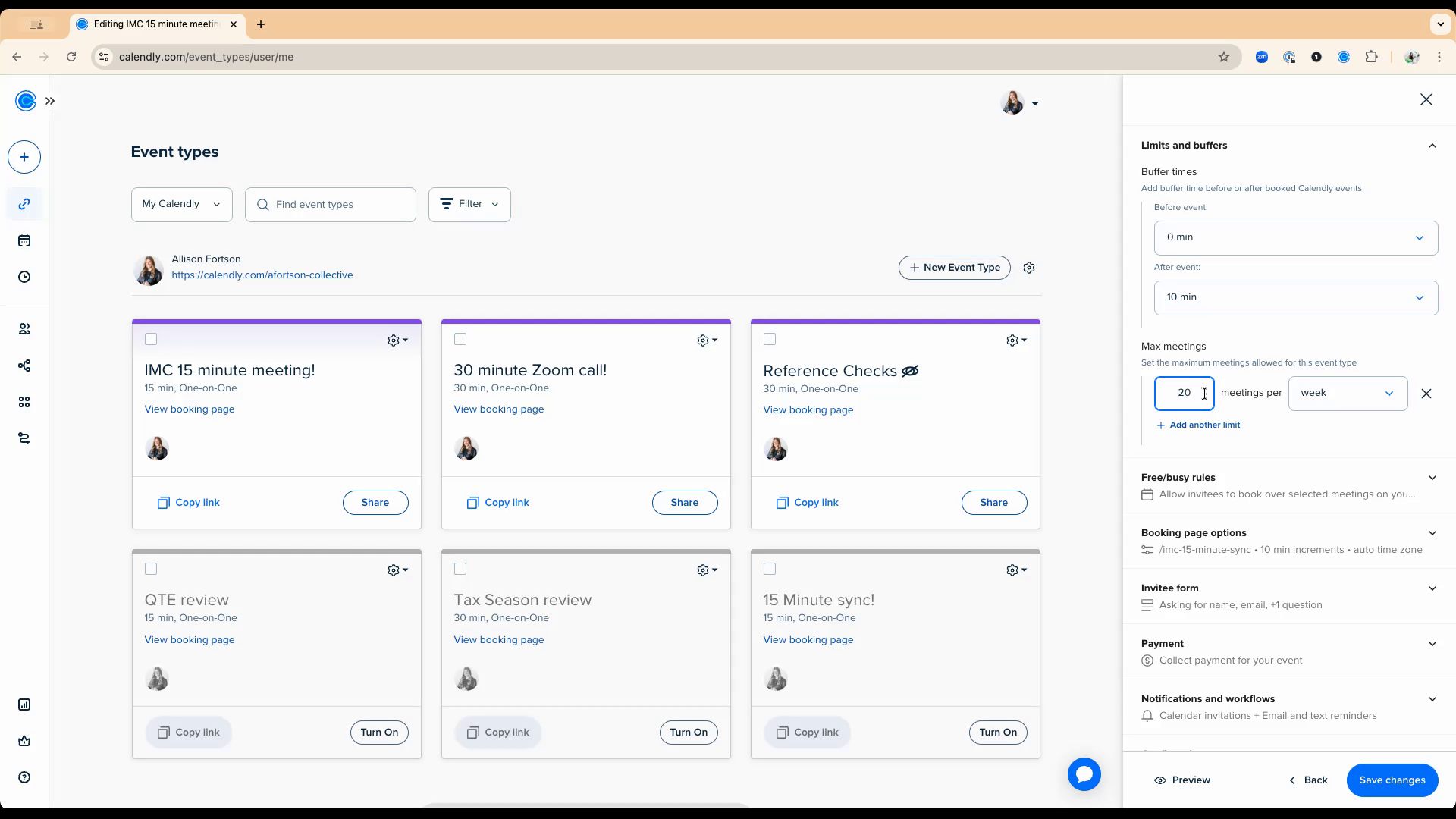 In this guide, we will walk through the process of setting up your calendar using Calendly, specifically focusing on creating an IMC (Integrated Management Calendar) link. This setup will help ensure your availability is accurately reflected, and that you can manage your meetings efficiently. By the end of this guide, you will be able to configure your Calendly settings to accommodate the required number of meetings per week and implement necessary buffers and notifications.