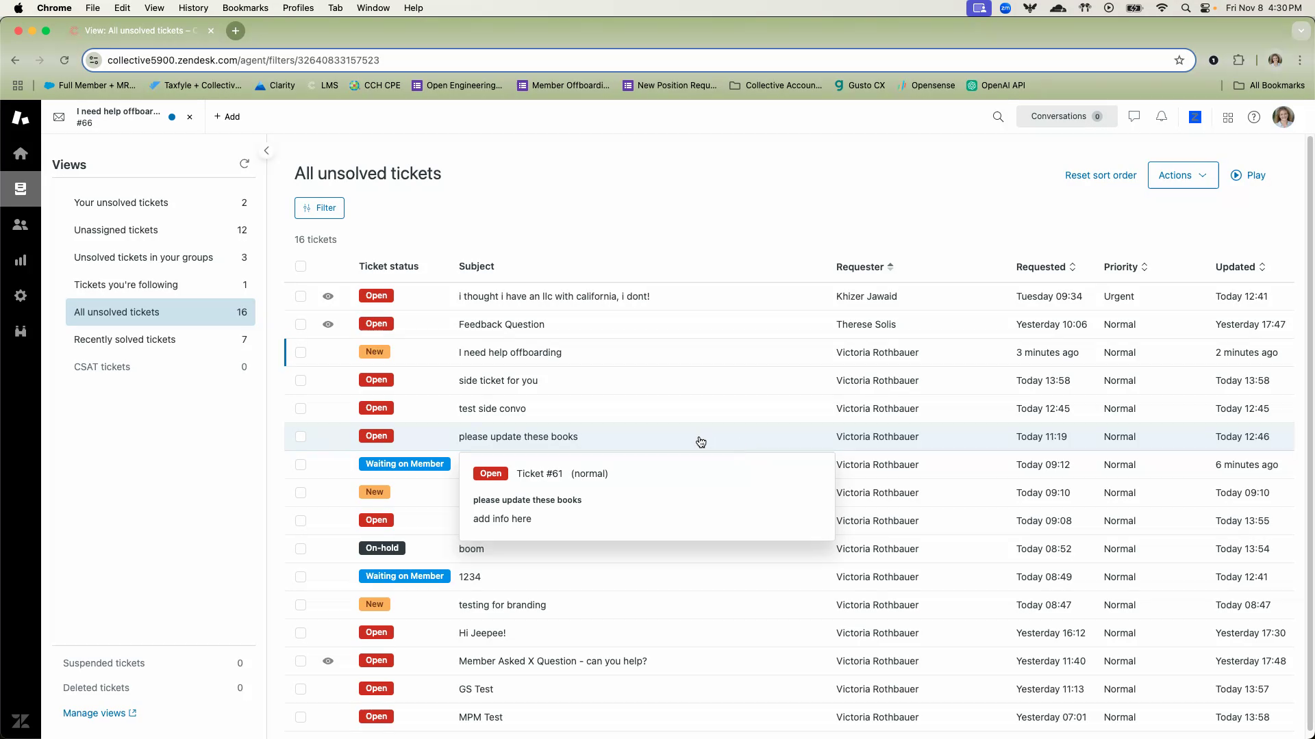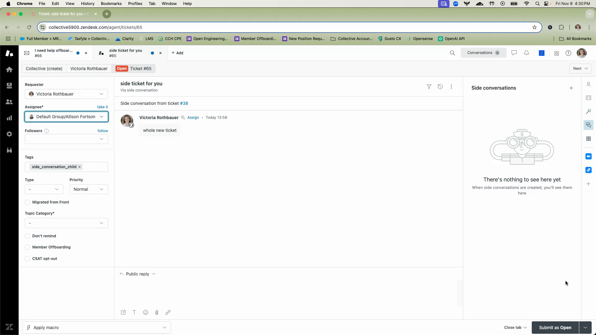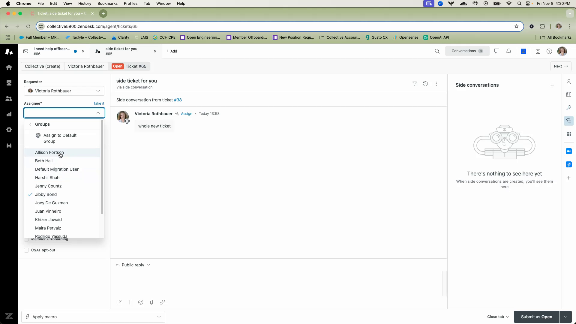 You should see that Allison is now the assigned user for that ticket.
