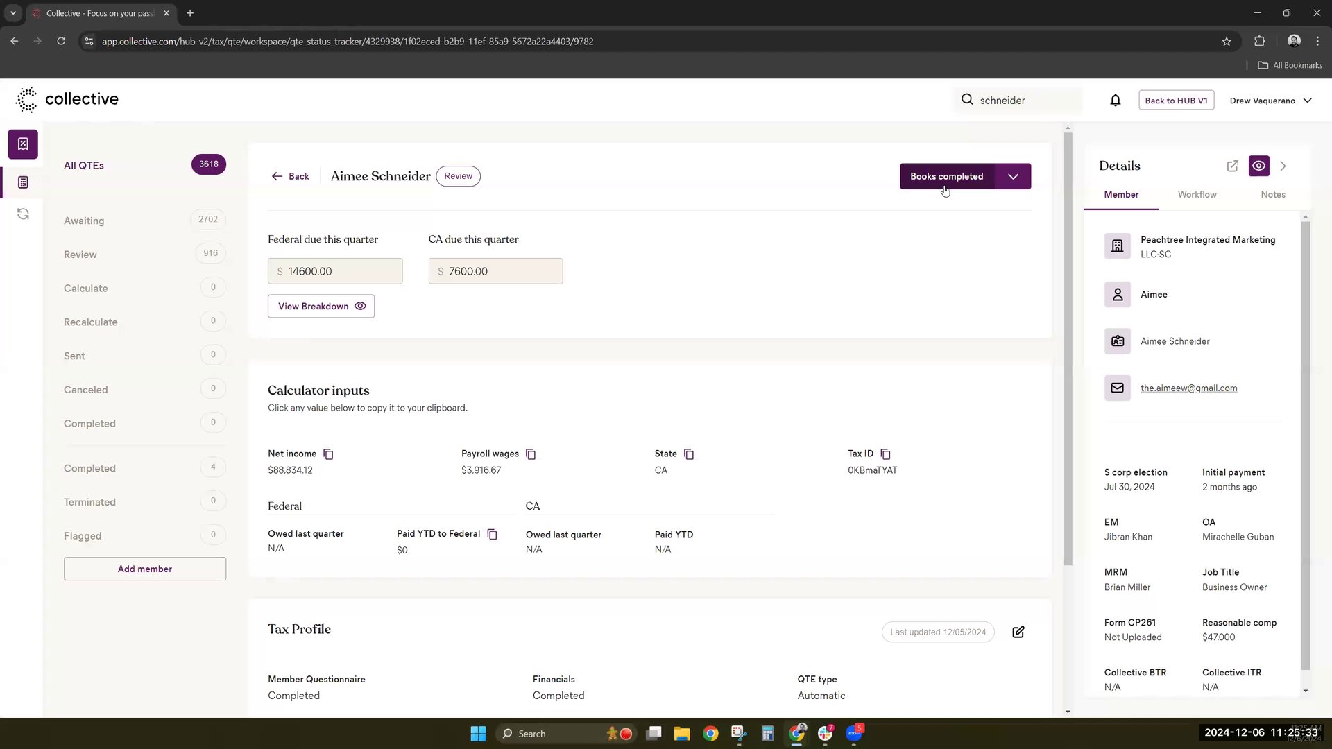 If the member wishes to change their filing status after receiving their QTE, they will need to select a recalc request. Navigate to the taxes section and then select QTE.