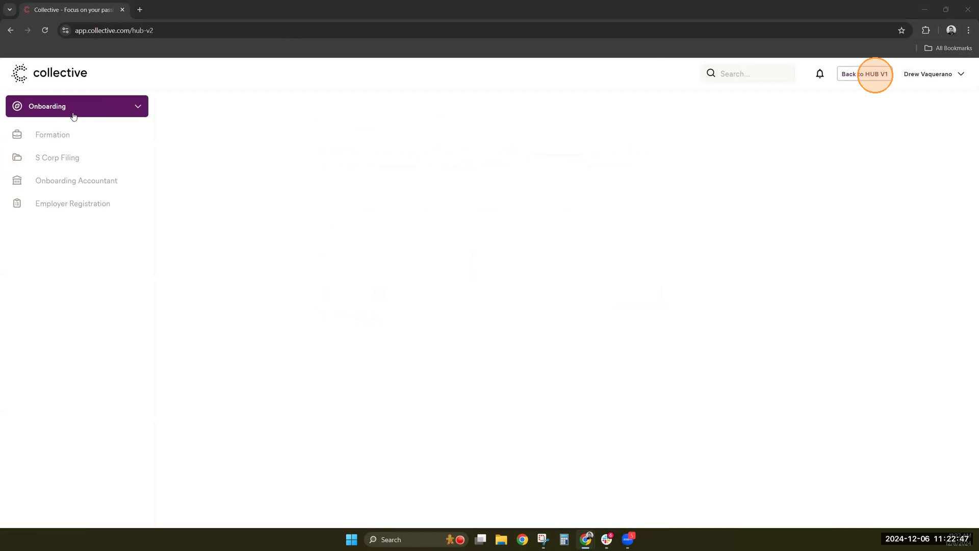 Once logged in, ensure you are in the Hub V2. Go to the left section on the onboarding side.