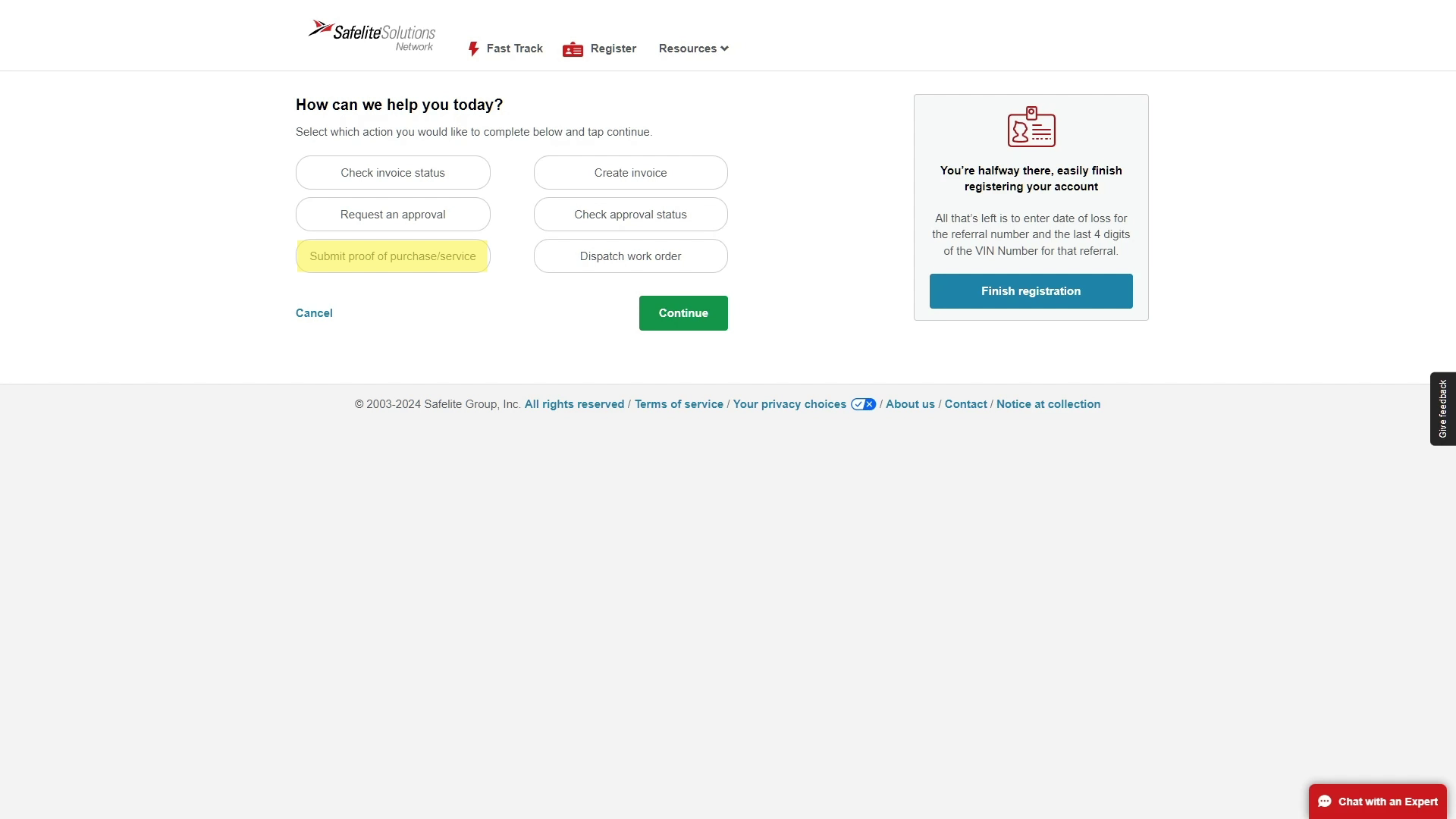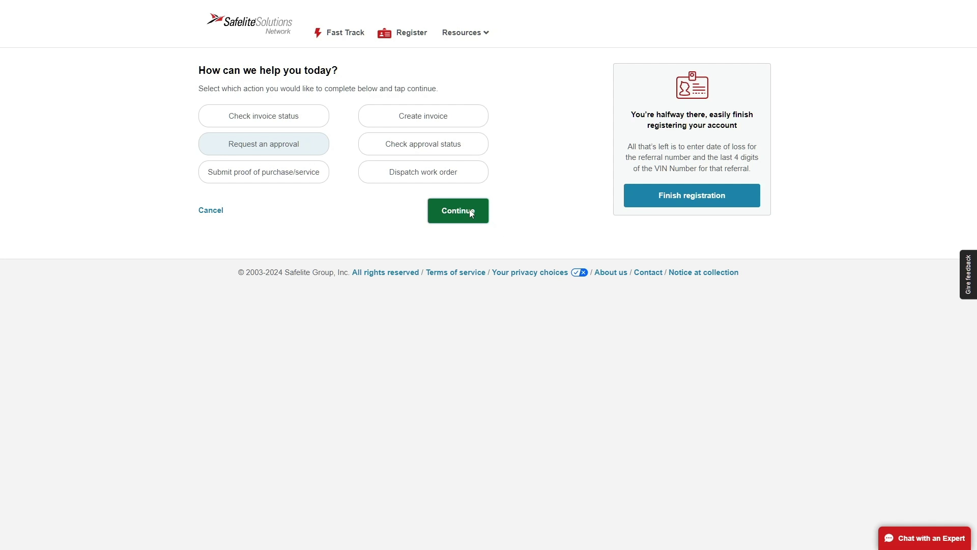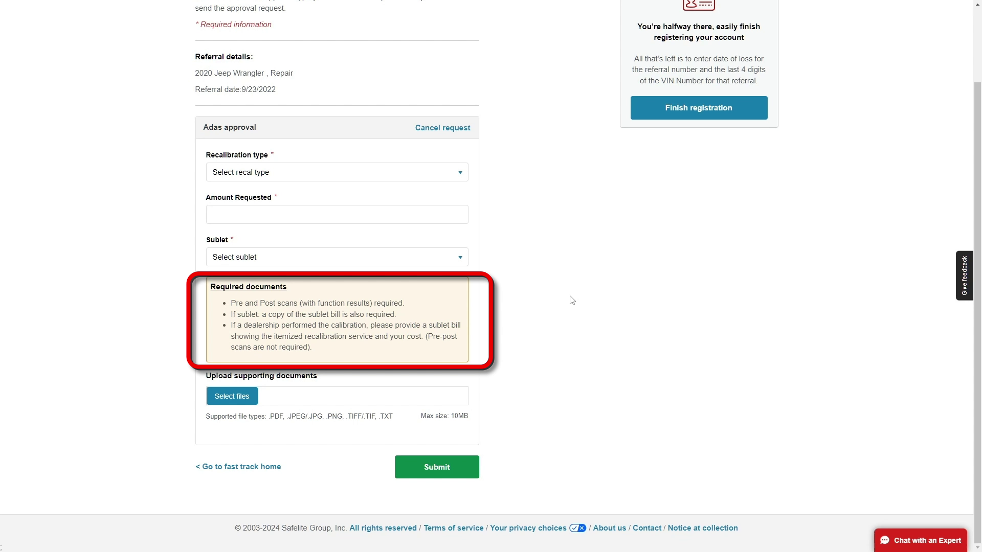 You will be redirected to the SafeLite website. Here, you need to enter your shop number and the job's referral number, both of which can be found on your dispatch.