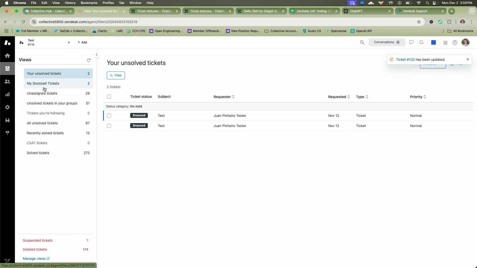 You can also view your regular ticket views to see which tickets are snoozed versus those that are open. This helps in managing your workload effectively.