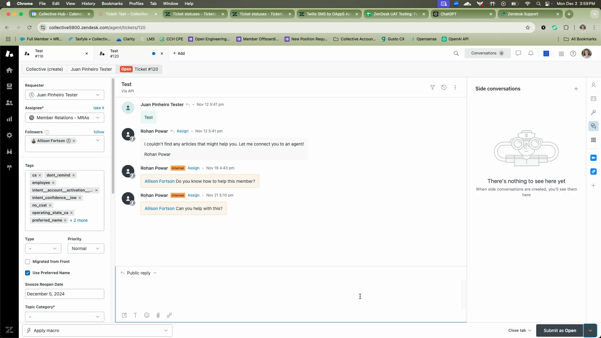 If you wish to reopen the ticket on a specific date, you can select a date from the calendar. For example, you can choose to snooze a ticket until December 5th.