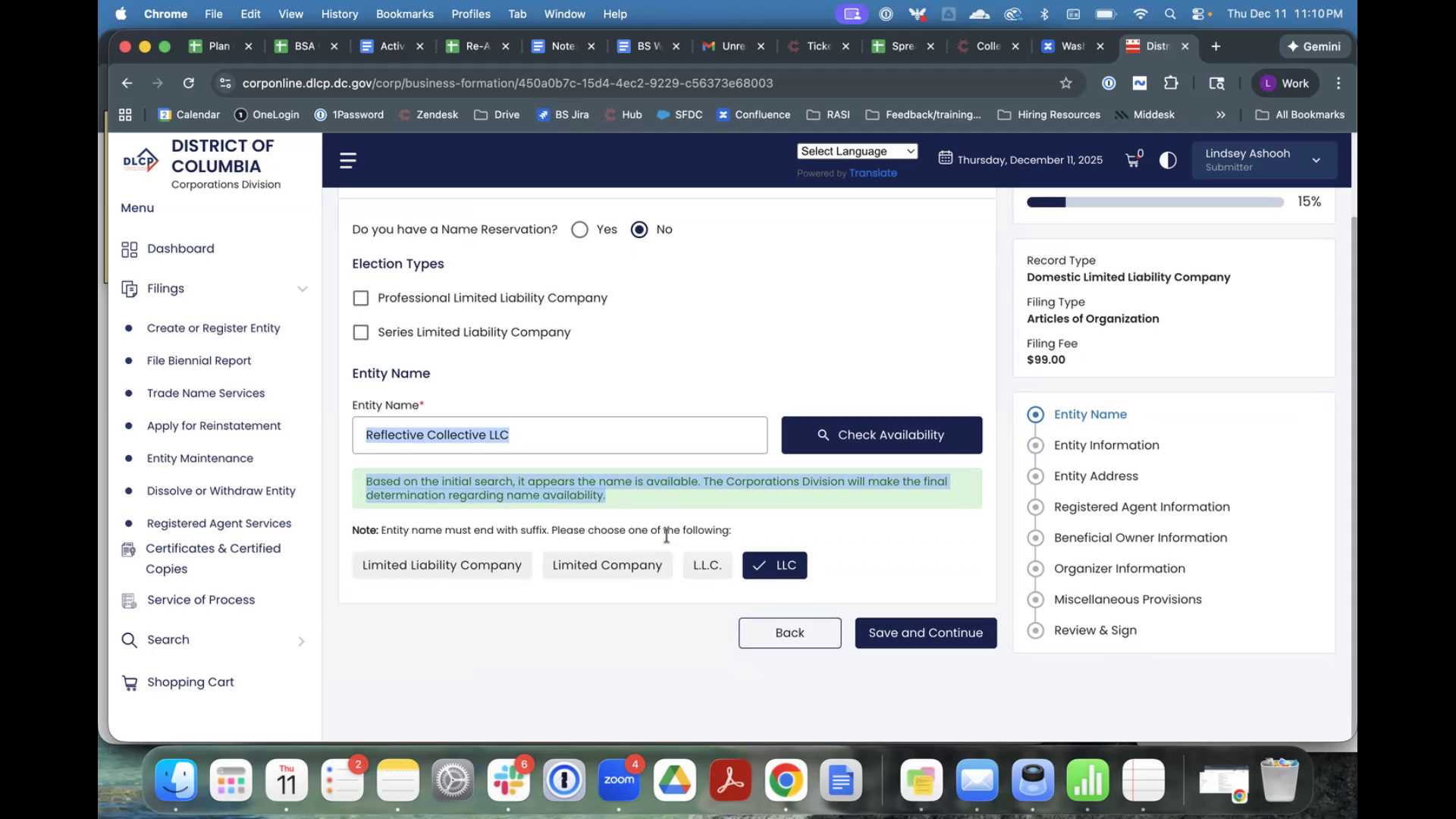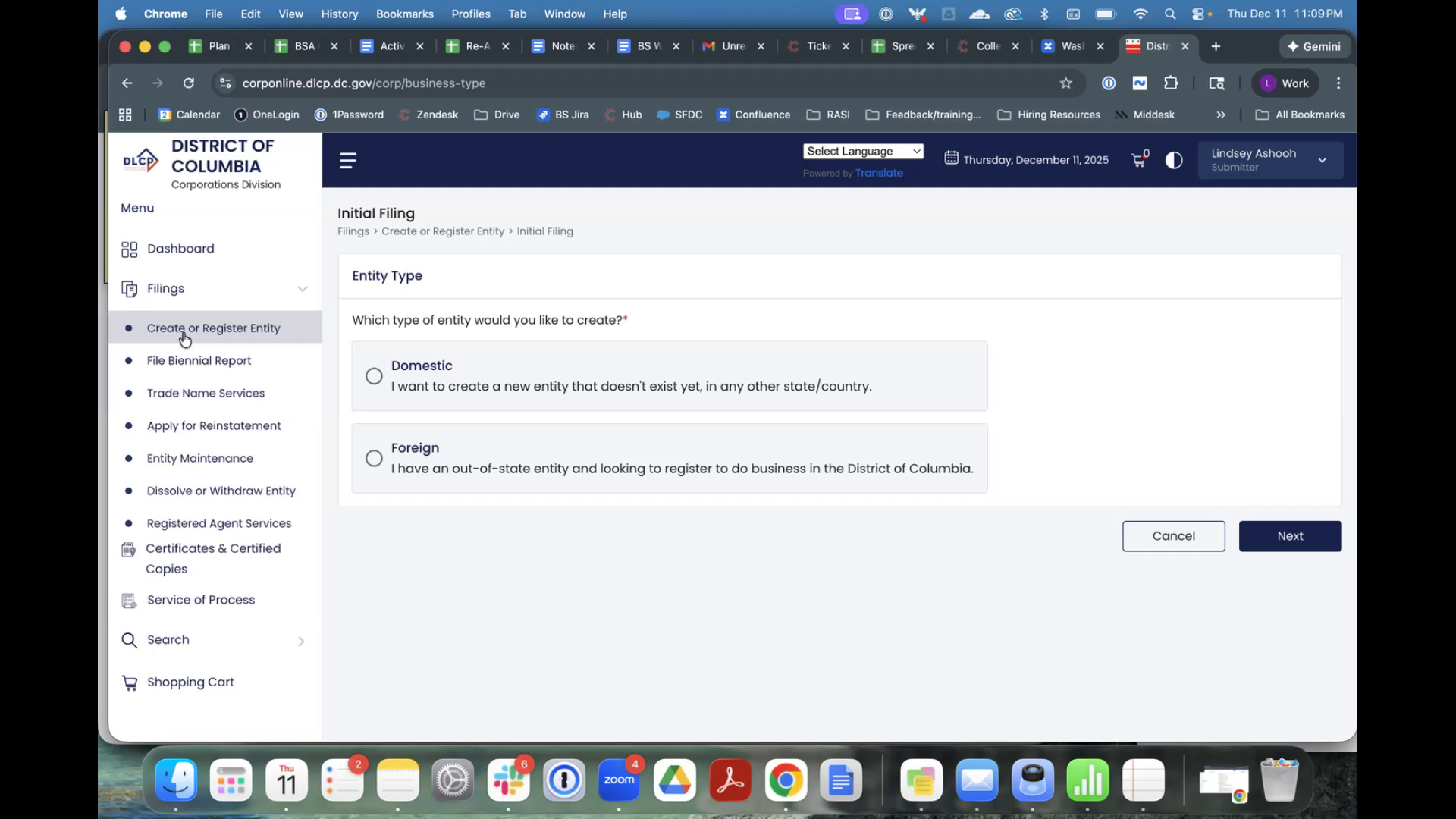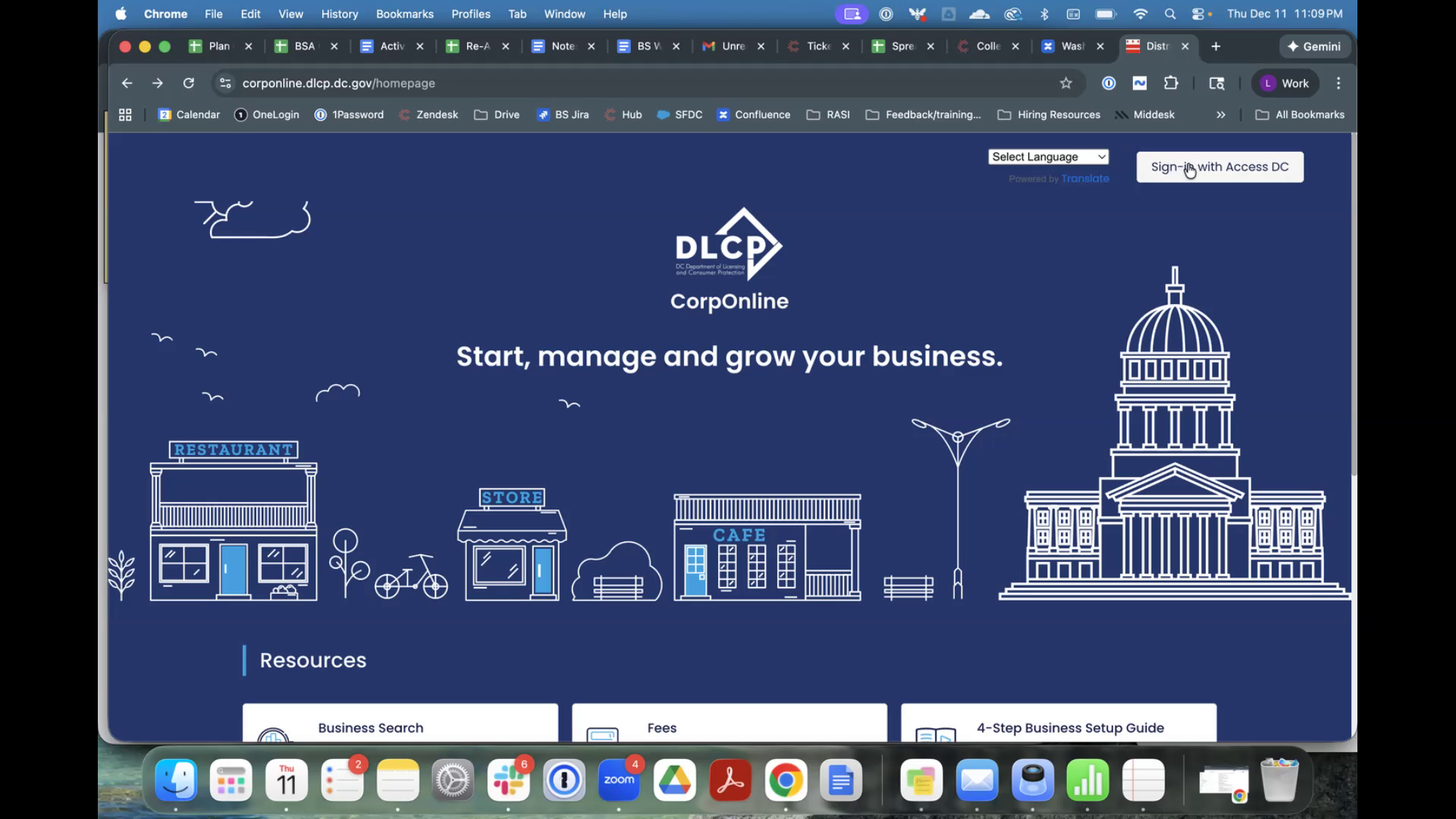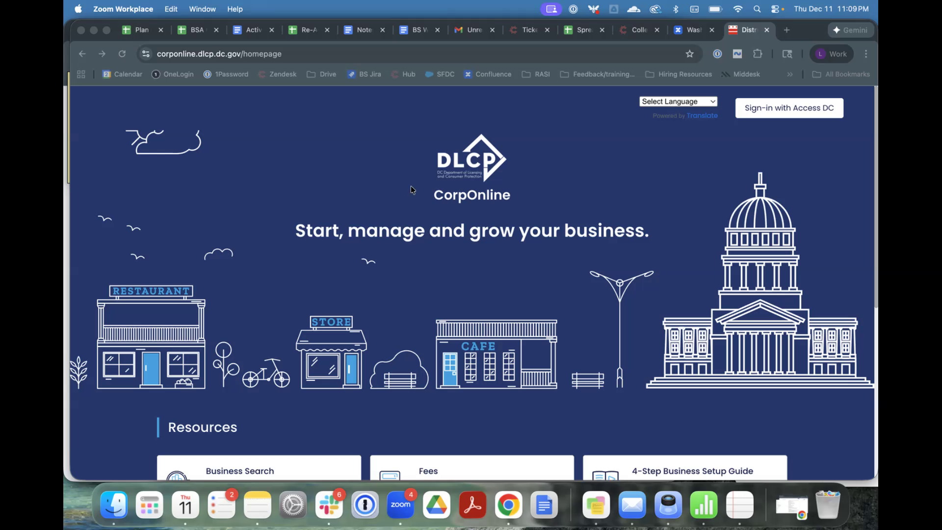 To begin the formation process, navigate to the Washington DC business portal via the link provided on your Confluence page.