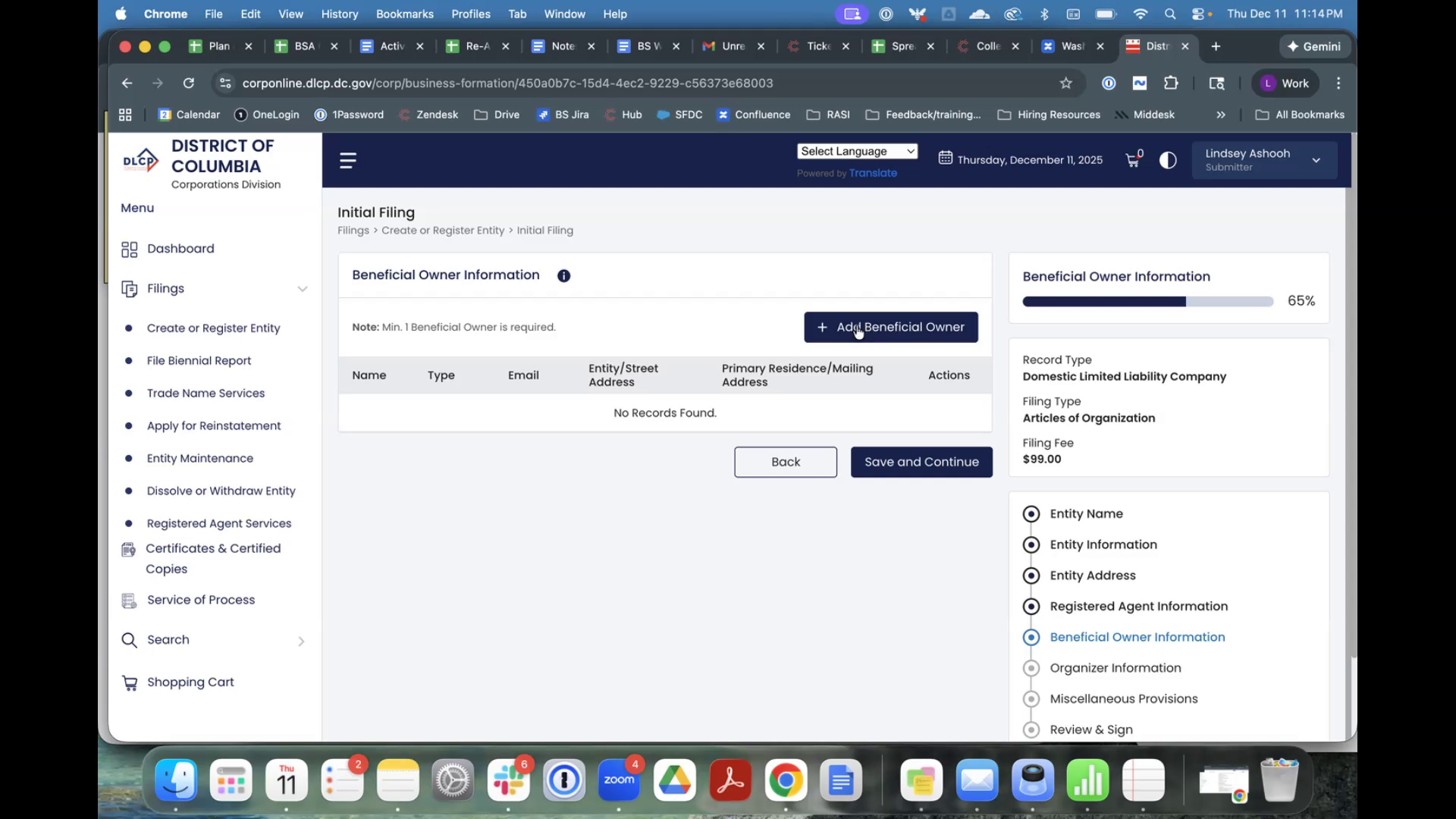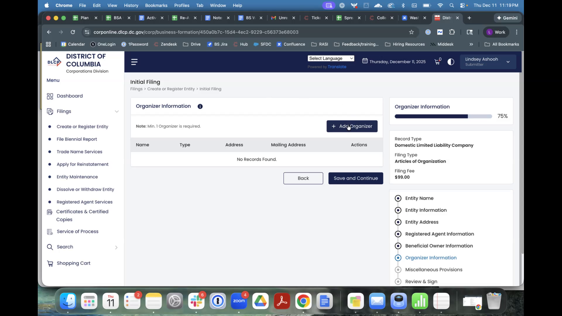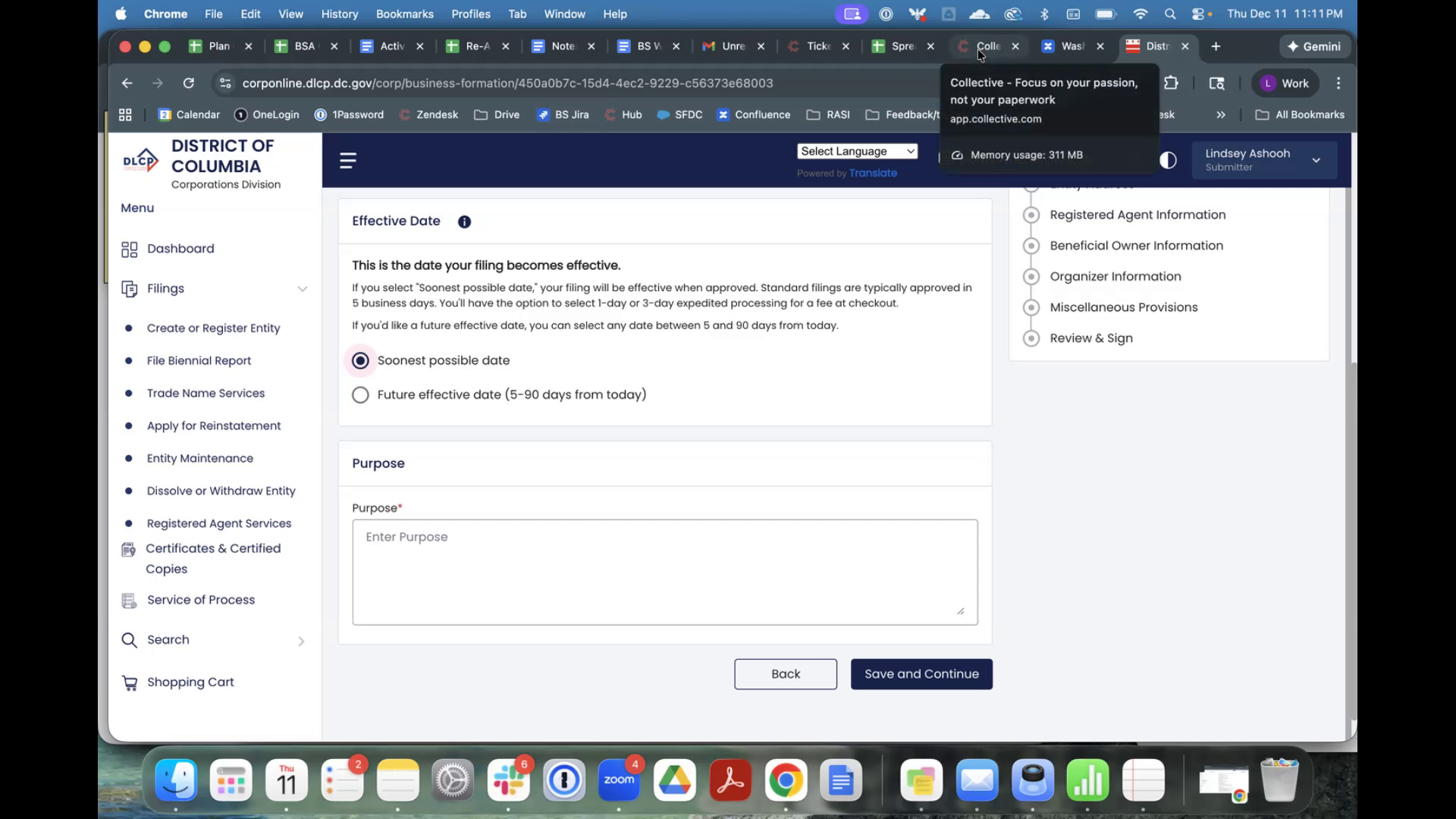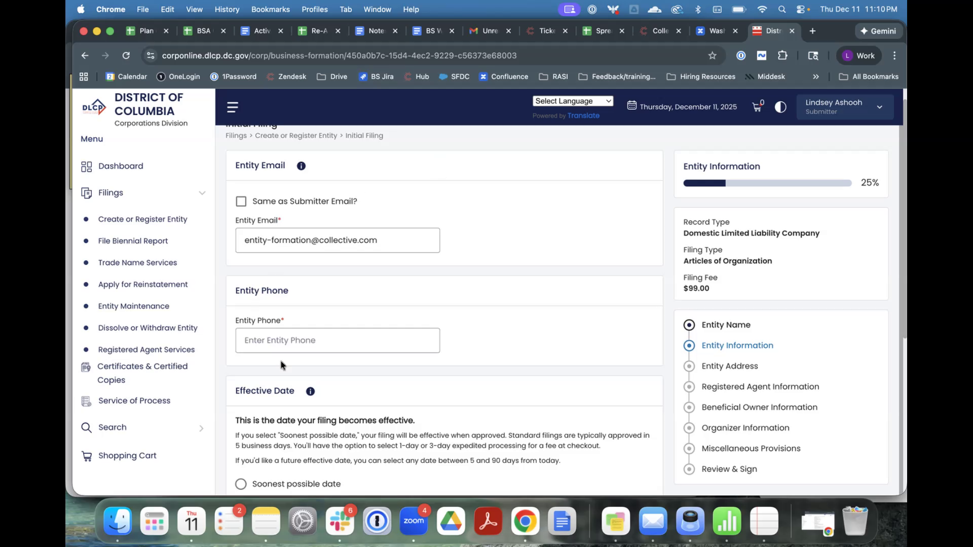 To begin the formation process, navigate to the Washington DC business portal via the link provided on your Confluence page.