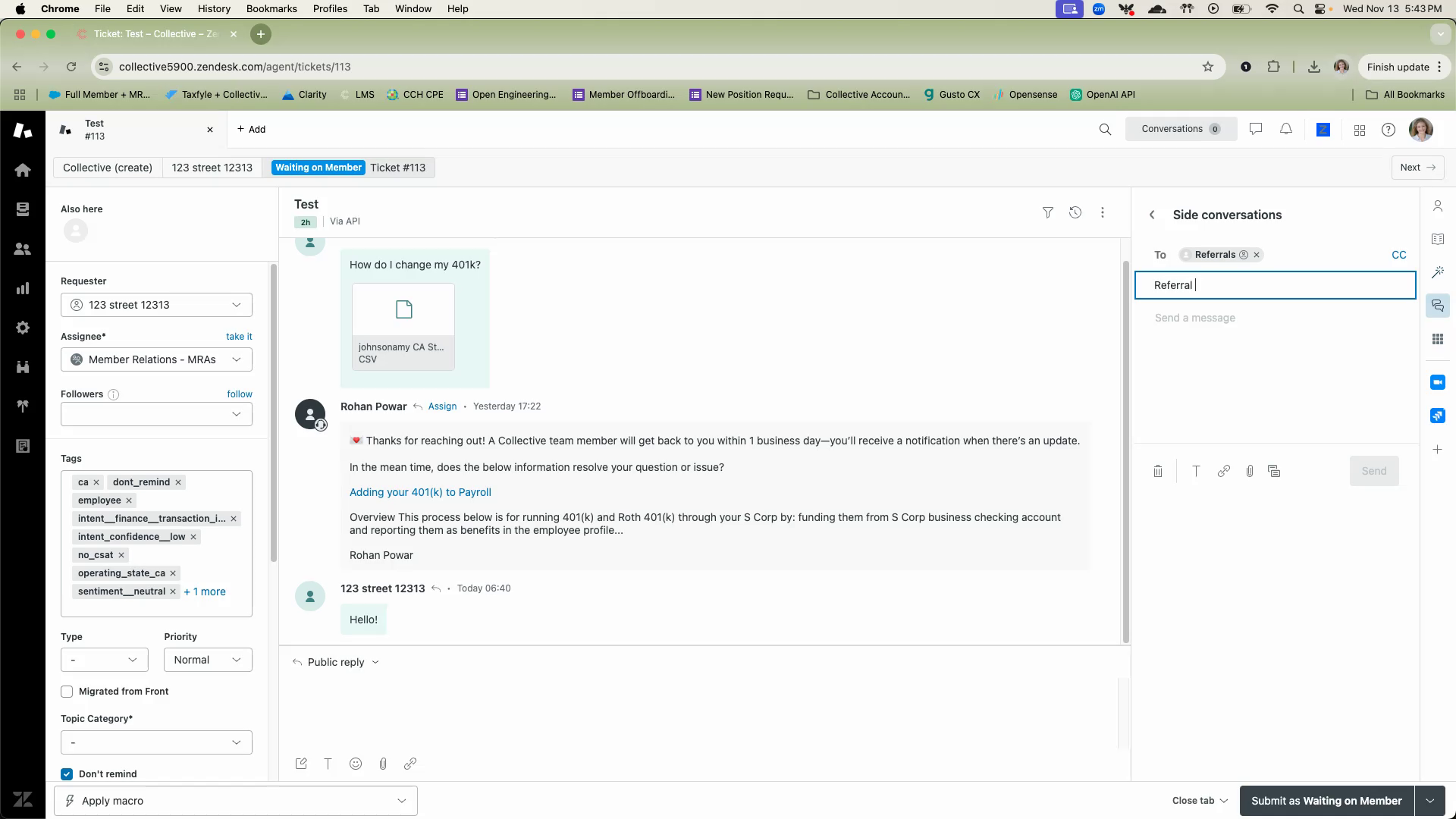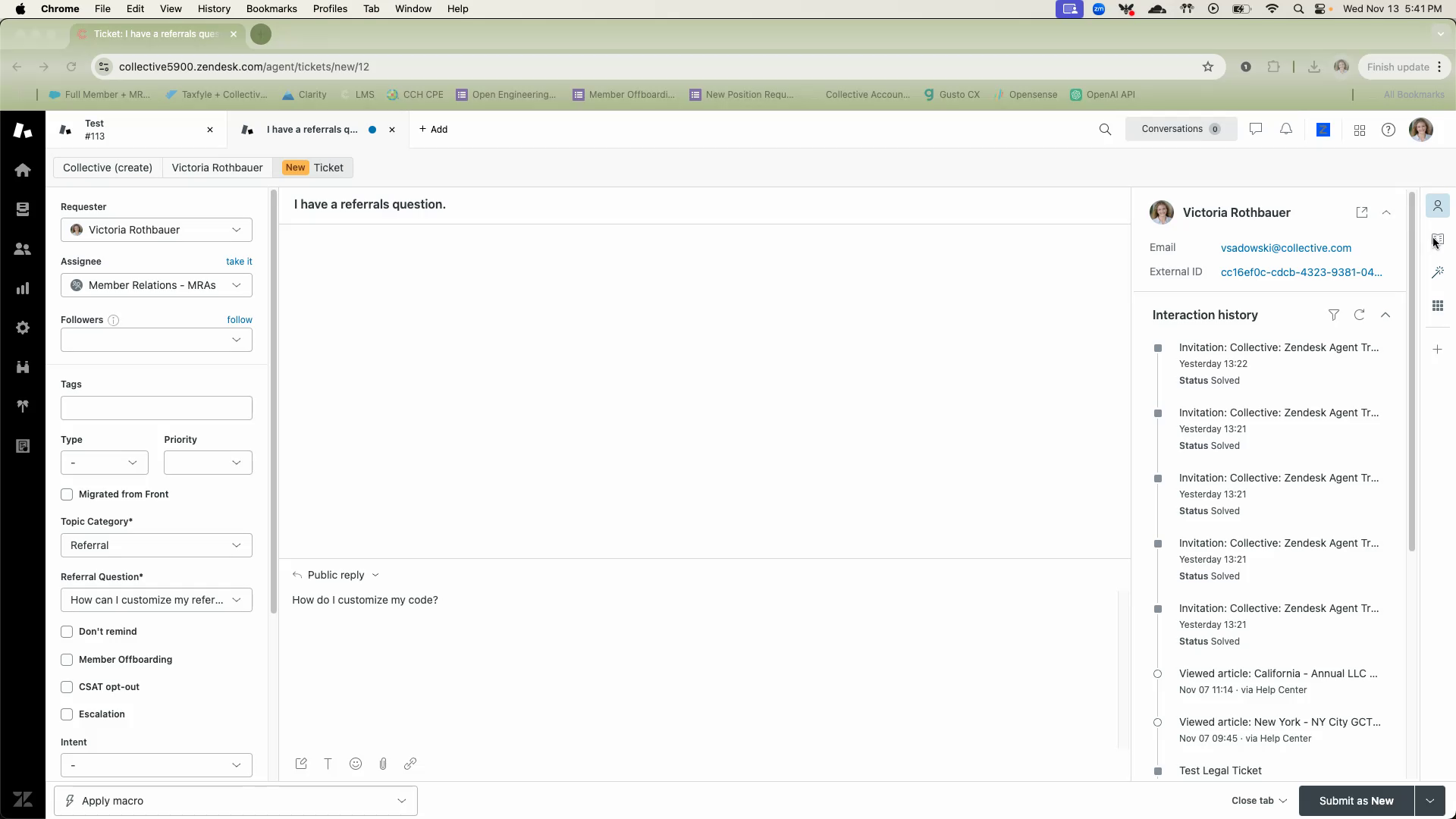 By following the steps outlined in this guide, you will be able to effectively handle referral questions in Zendesk. You will be equipped to respond to common inquiries with macros, create child tickets for more complex issues, and communicate efficiently with the referrals team, ensuring that all member inquiries are addressed promptly and accurately.